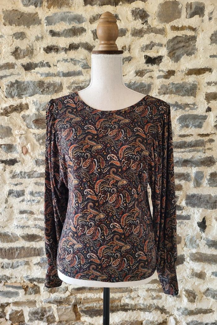 Blouse manches longues imprimé cachemire noir rouille doré Cache Cache Taille XS ou 34 - photo numéro 11