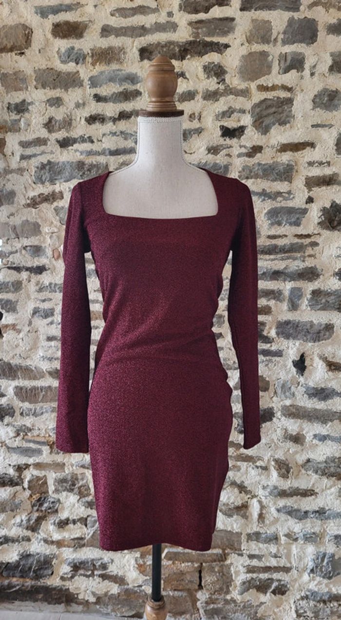 Robe de soirée moulante manches longues bordeaux irisé H&M Taille S ou 36 - photo numéro 1