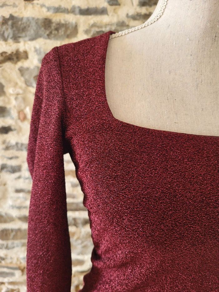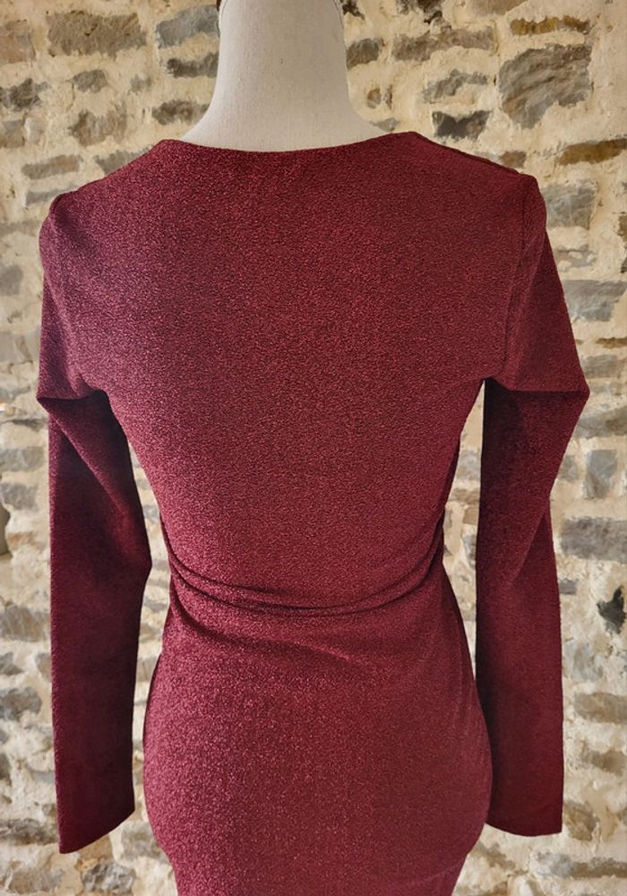 Robe de soirée moulante manches longues bordeaux irisé H&M Taille S ou 36 - photo numéro 12