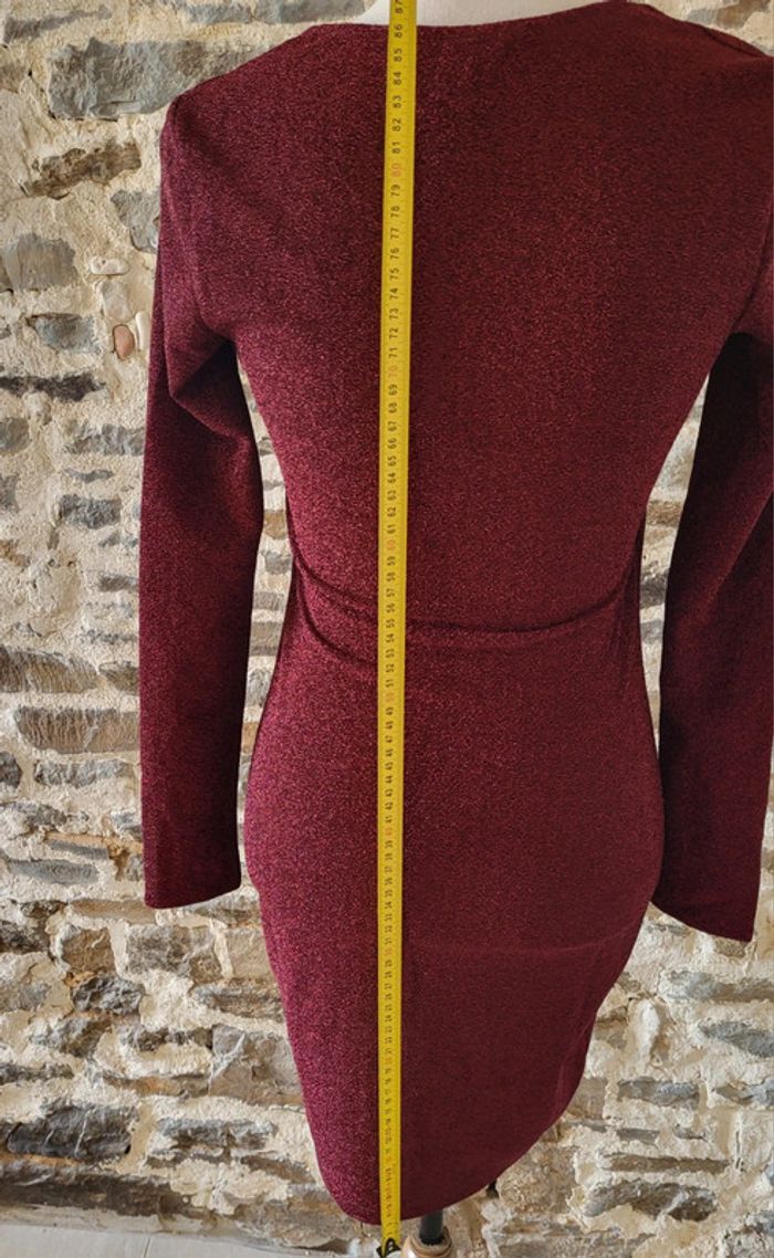 Robe de soirée moulante manches longues bordeaux irisé H&M Taille S ou 36 - photo numéro 11