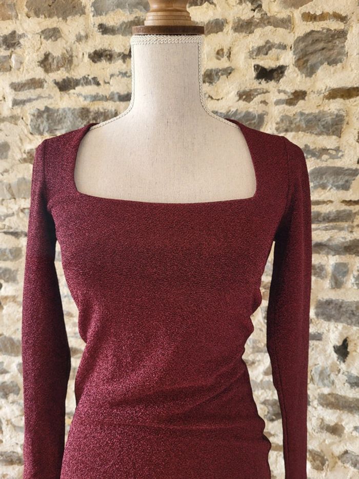 Très jolie robe moulante de cérémonie bordeaux irisé, chic, manches longues H&M Taille S ou 36 Fibres métalliques qui donne le côté irisé Contient 10% d'elastane, elle est très extensible En excellent état, comme neuf #matka27_taille36 #hm #robedeceremonie #robedesoirée #robemoulante #bordeaux #chic