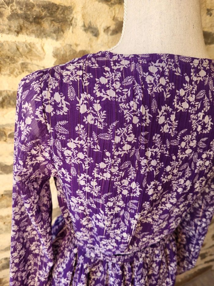 Robe mauve violet fleurie irisé manches longues Kiabi Taille S ou 36 - photo numéro 7