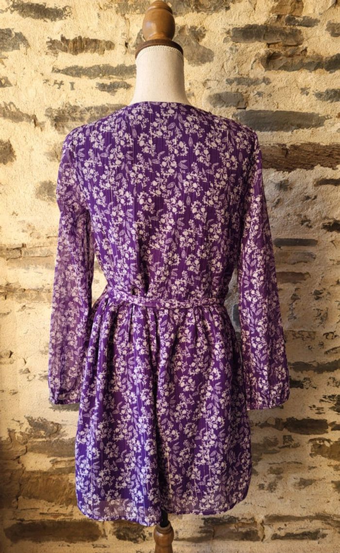 Robe mauve violet fleurie irisé manches longues Kiabi Taille S ou 36 - photo numéro 4