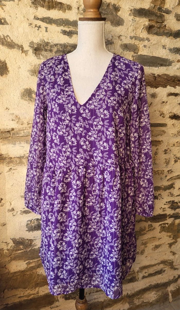 Robe mauve violet fleurie irisé manches longues Kiabi Taille S ou 36