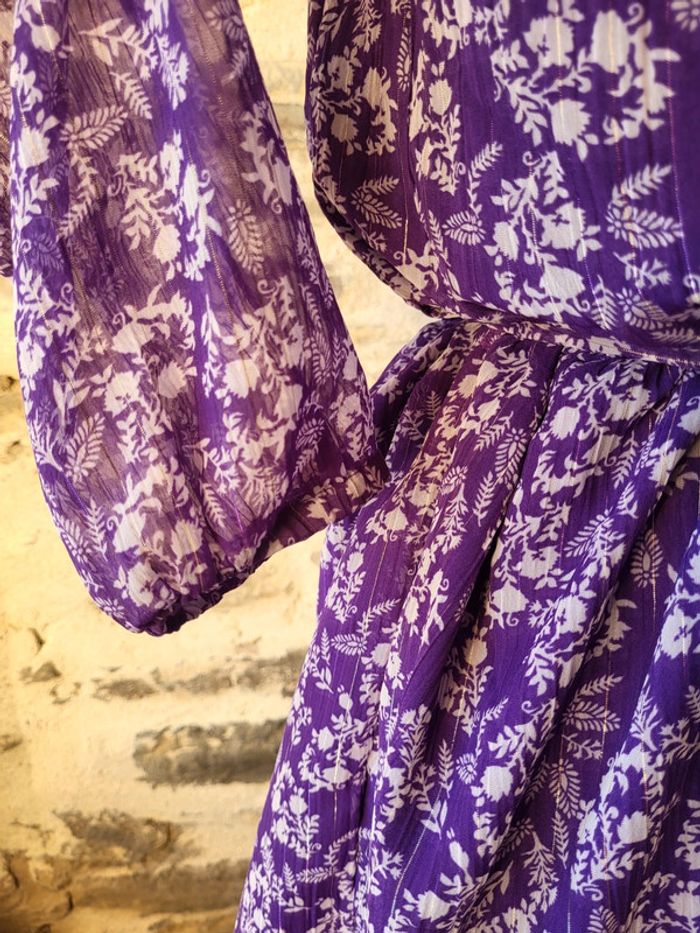 Robe mauve violet fleurie irisé manches longues Kiabi Taille S ou 36 - photo numéro 9