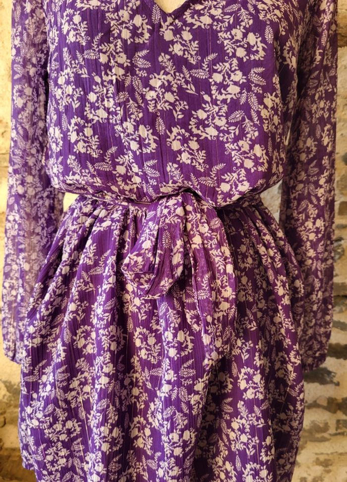 Robe mauve violet fleurie irisé manches longues Kiabi Taille S ou 36 - photo numéro 2
