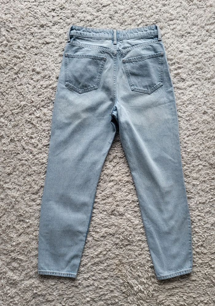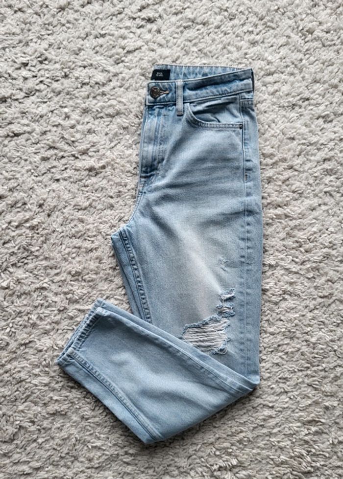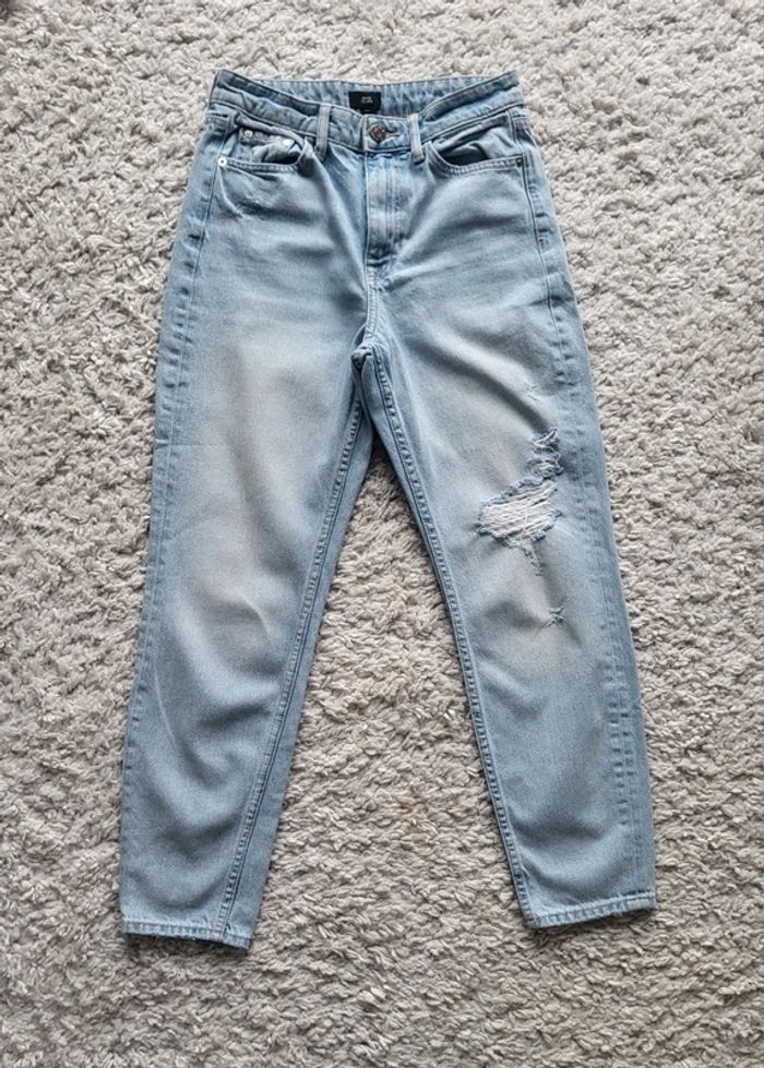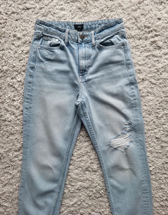 Très beau jean taille haute, coupe mom bleu clair River Island Taille 34, taille grand, correspond plus à un 35 (entre 34 et 36), voir photo mesures à plat 100% coton Effet délavé et déchiré d'origine En excellent état, comme neuf #matka27_taille34 #riverisland #jeandéchiré34 #jeanmom34 #jeansbleuclair34 #taille34femme #jeantaillehaute #y2kstyle