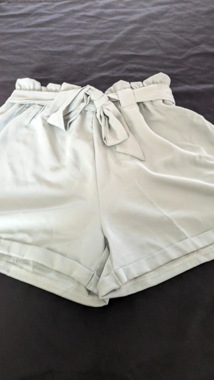 Short à jambes droites avec taille à smocks couleur menthe T.L/44 jamais porté - photo numéro 7