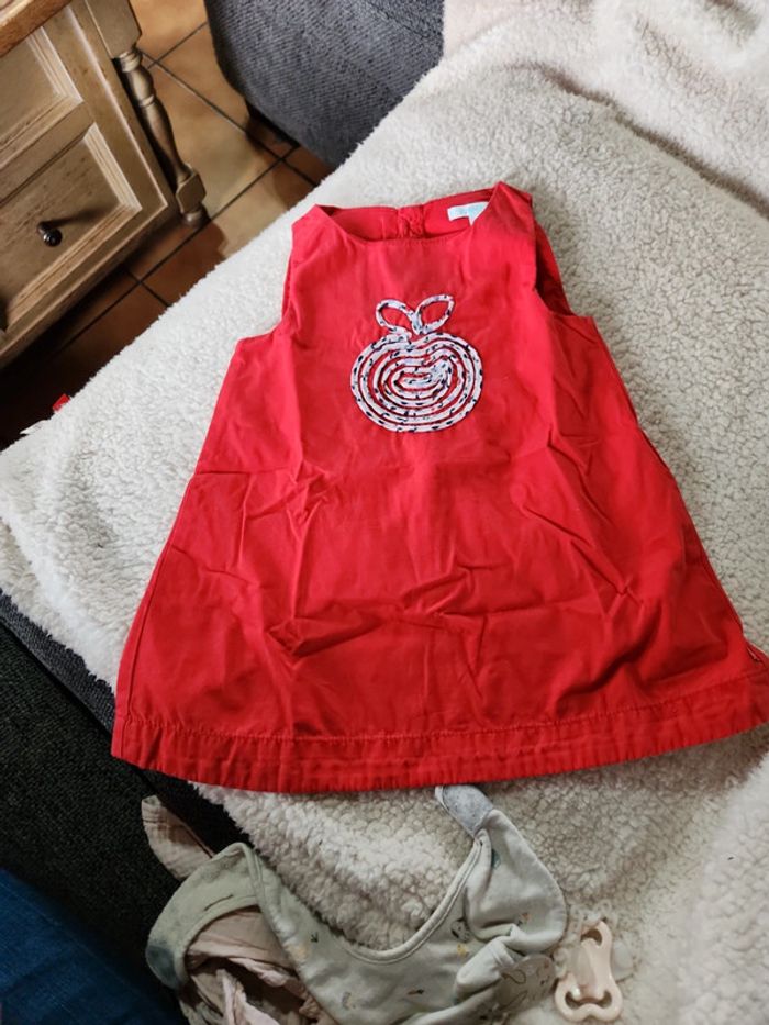 Robe sans manches en très bon état aucune tâche ni trou. Le rouge n'est pas aussi flashy que sur la photo. #audreymaestromelovêtementsfille18mois