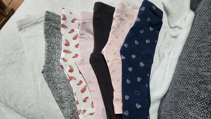 Lot de 7 leggings en très bon état. Aucune tâche ni trou. Ma fille les a porté à deux mois donc pas de 4 pattes avec. #audreymaestromelovêtementsfille6mois