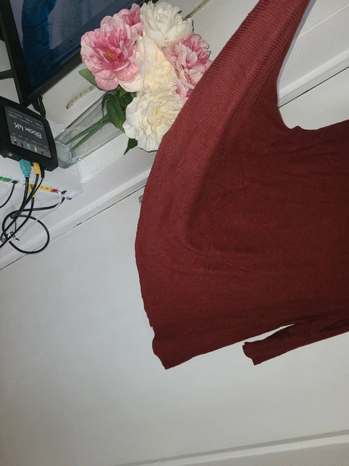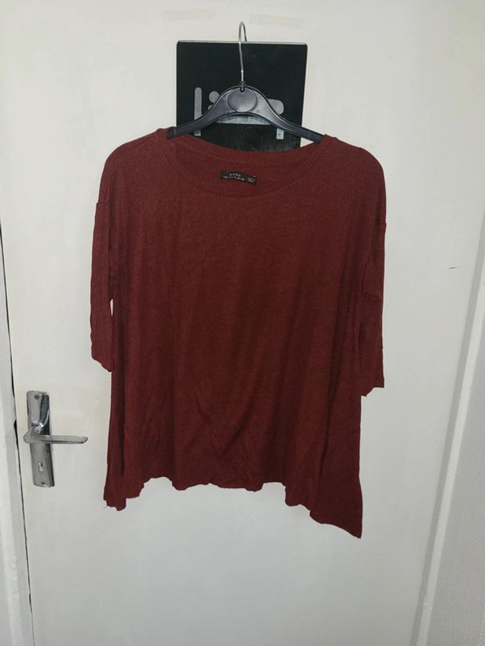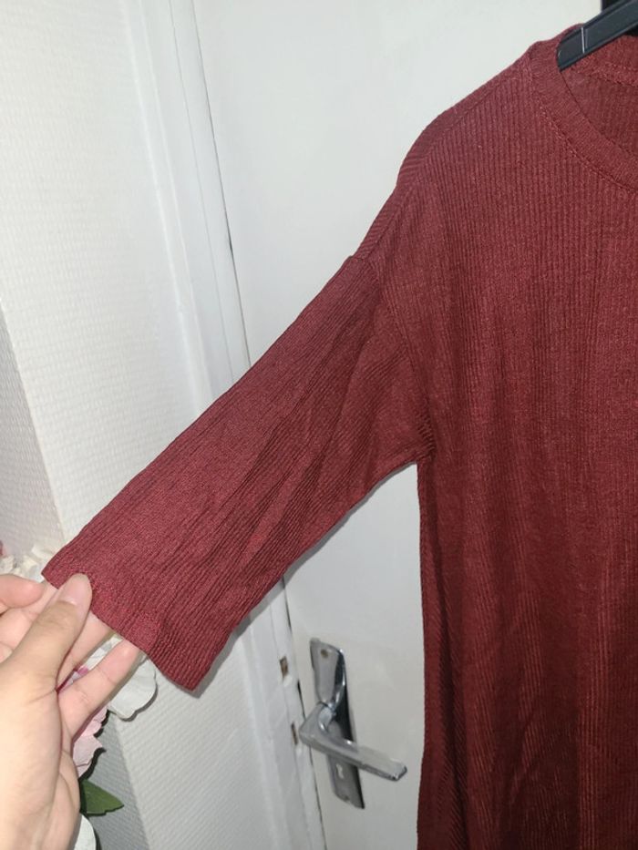 Tee-shirt manche 3/4 bordeaux évasé en bas