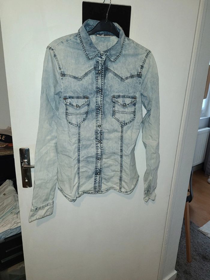 Chemise délavé en jeans Jamais porter , pas de photos porter trop petit pour moi! N'hésitez pas il y a des remises sur les lots