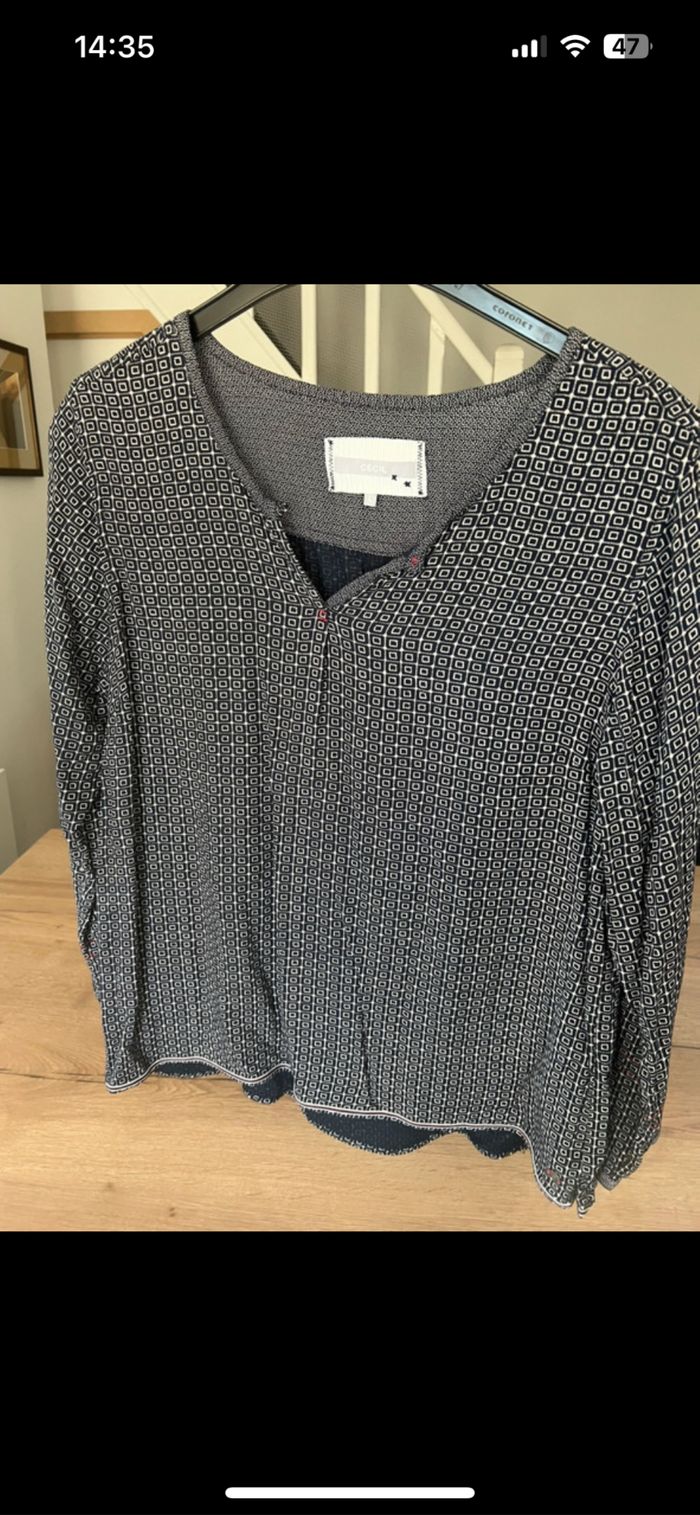 Blouse légère Cecil taille L Bleu marine et blanc avec jolis détails .