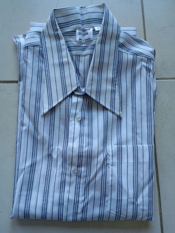 Chemise blanche rayée bleu Manches longues Neuve 65%polyester 35%coton Taille 44 Bcp d'autres chemises à vendre neuve ds d'autres annonces
