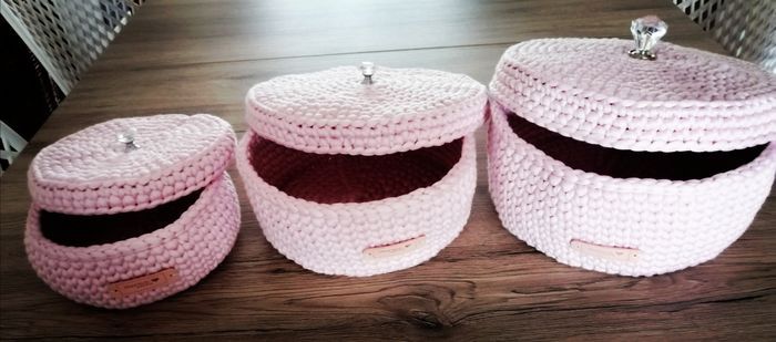 Création déjà vendu Trio de panier diamètre 20cm, 18 et 16cm Idéal pour les rangement de vos bébés. pour un cadeau original... jouet, hygiène, accessoires... N'hésitez pas à me contacter pour plus d'informations Possible de les créer en d'autre coloris. Made in france 🇫🇷 Handmade 🧵