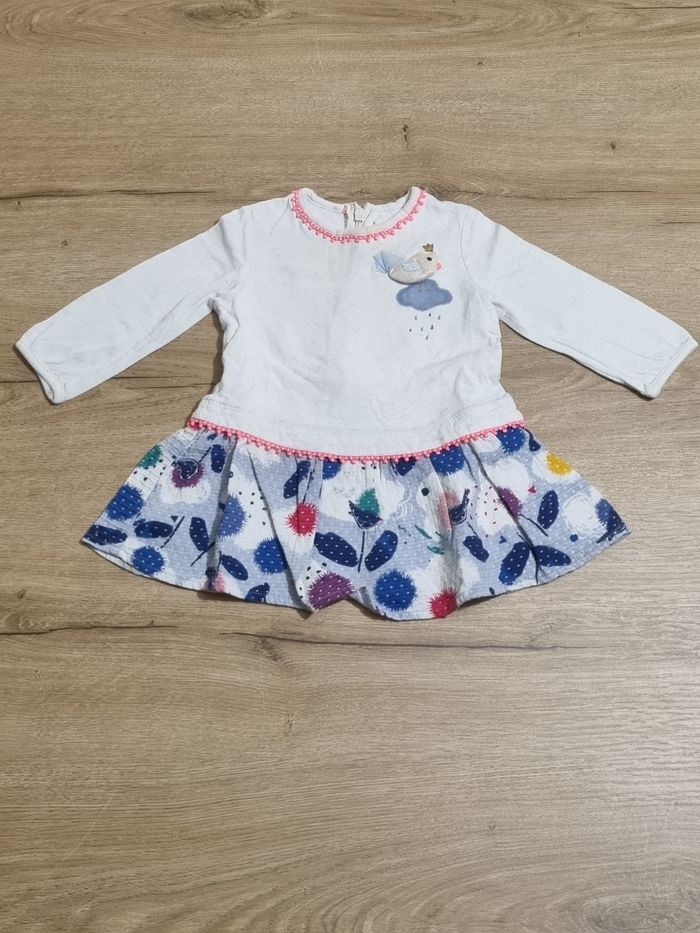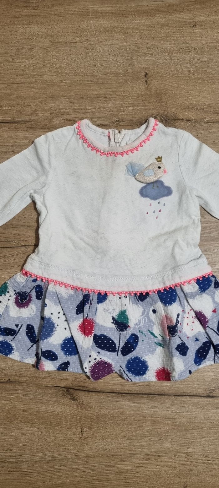 Robe à manches longues avec motif oiseau et jupe à motifs fleurs Catimini taille 12 mois Très bon état
