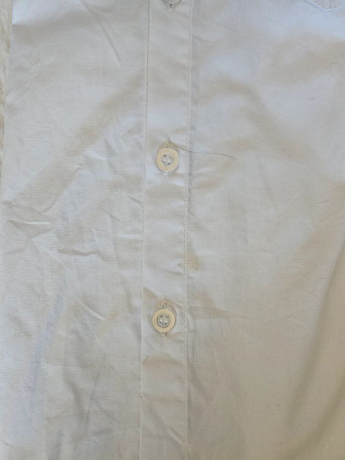 CADEAU : chemise blanche qui est tachée au niveau de la manche et sur le devant. Je n'ai pas essayé de la détacher.