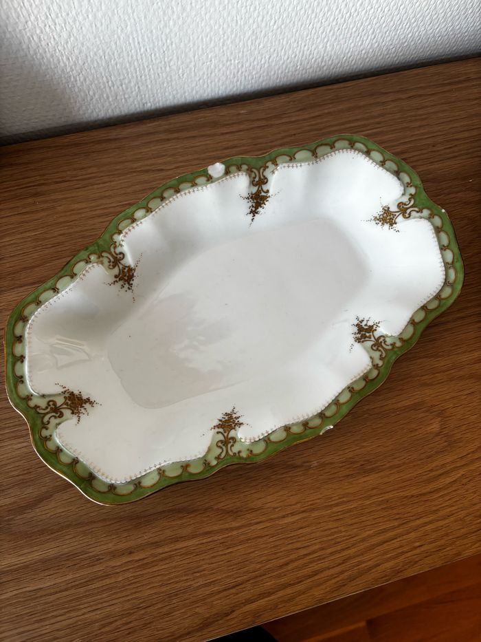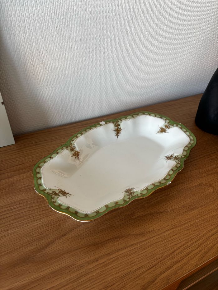 Vintage plat de service avec défauts vert à dorures en porcelaine de Limoges