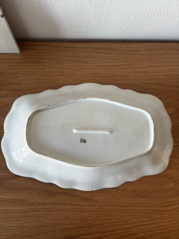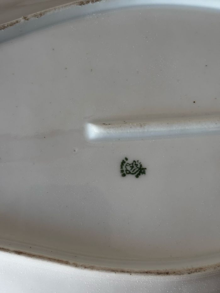 Bien lire la description et regarder les photos : vendu en l’état Beau plat de service . en état état satisfaisant : deux ébréchures sur les bords du plats et une autre au dessous du plat (ne compromettant pas la stabilité du plat posé) Hauteur : 4 cm Dimensions plat 33 x 21 cm Fabrication française, estampillées porcelaine de limoges. Pourtour vert clair avec des dorures sur la tranche et des arabesques dorées en incrustation idéales pour une table élégante ou pour noël. elles sont rares, je n’en n’ai pas trouvé en vente sur internet. Porcelaine de haute qualité.