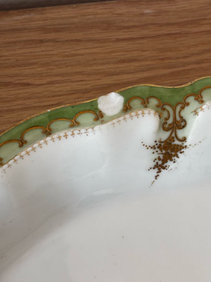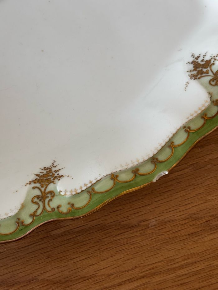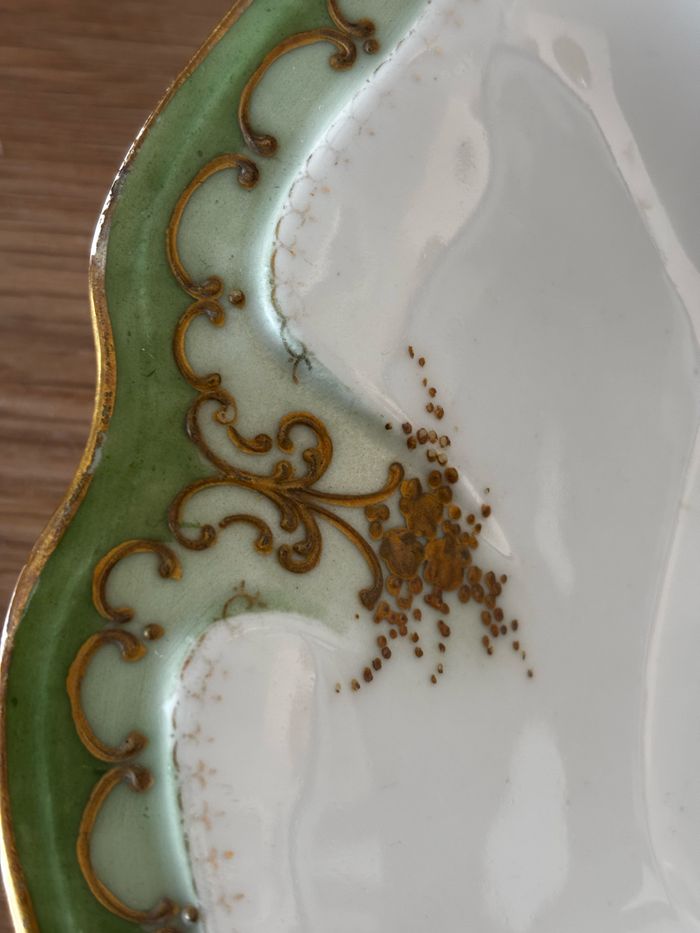 Vintage plat de service avec défauts vert à dorures en porcelaine de Limoges - photo numéro 8