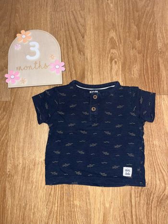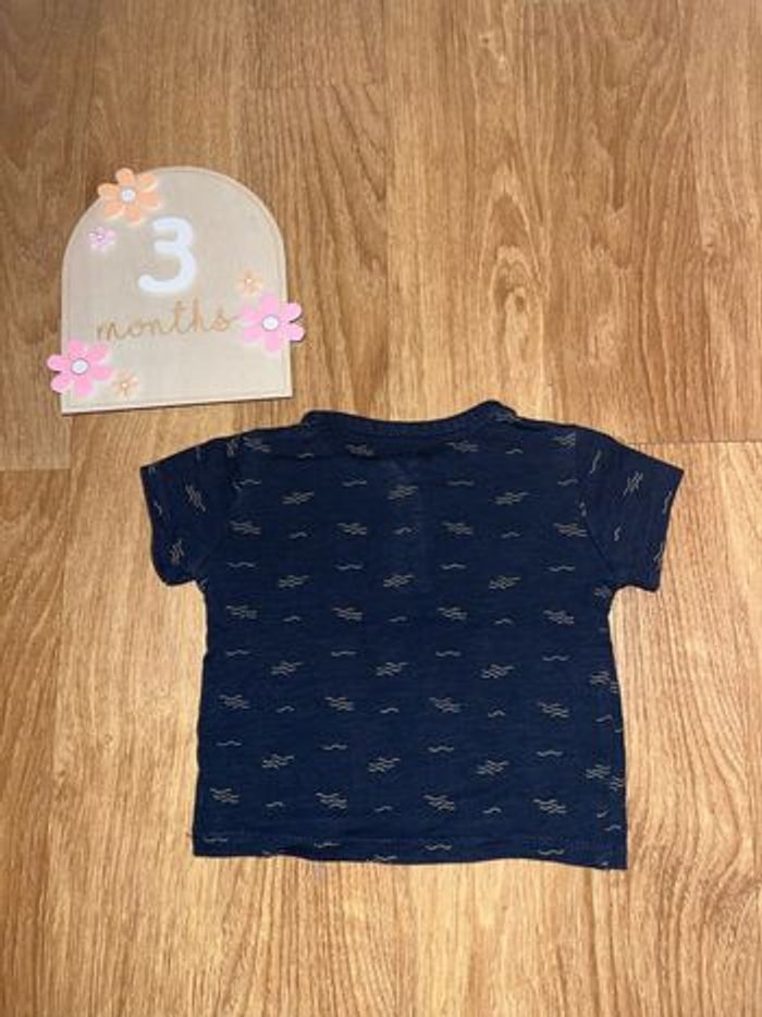 T-shirt manche courte avec patte de boutonnage au col . Très bon état. 3mois/56-62cm/6kg.