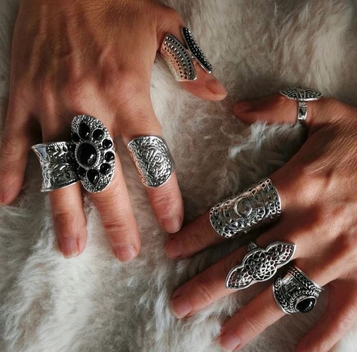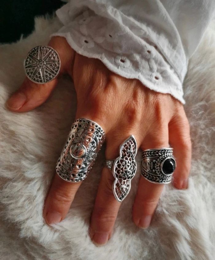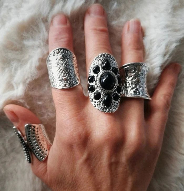 Lot de 8 bagues bohème rétro gothic chromé. Les tailles varient du 16mm au 19mm environ. Jamais porté #bijou #bijouxfantaisie #bijouxfemme #retrofashion #fashion #fantaisie #boho #boheme #bohemechic #jewels #jewerly #jewerlyset#lotbijoux #gothicstyle#accessories #bague#lotbague
