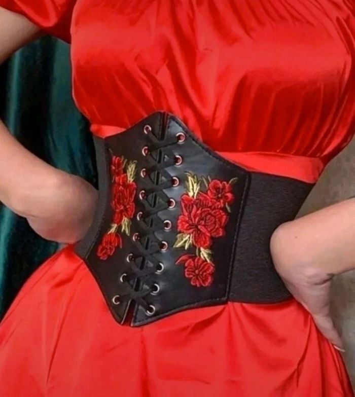 A38 ceinture gaine corset vintage rétro brodé ajustable - photo numéro 2