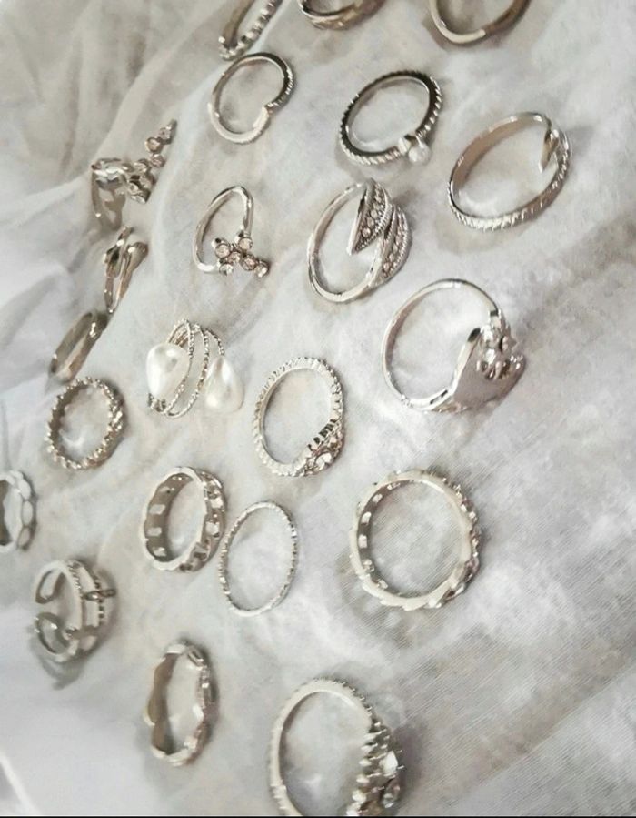 Lot de 23 bagues chromé argenté tendance diverses taille.neuves. Jamais porté #bijou #bijouxfantaisie #bijouxfemme #retrofashion #fashion #style #accessoriesfemme #accessoires #jollas #jewelleryset #lot#lotbijou#accessories #accessories #bague #set #setbijoux #jewerlyset#lotbijoux