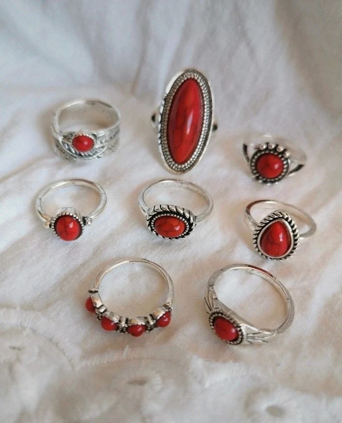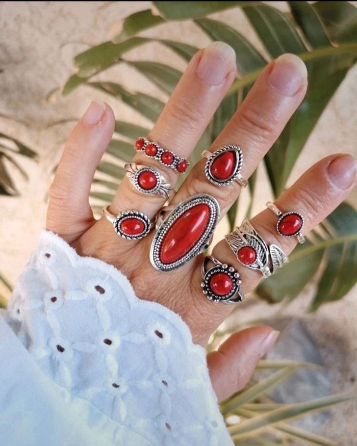 Lot de 8 bagues bohème rétro diverses taille neuve. Jamais porté #bijou #bijouxfantaisie #bijouxfemme #retrofashion #fashion #style #accessoriesfemme #accessoires #jollas #jewelleryset #lot#lotbijou#accessories #accessories#cadeau #bague#lotbague #set #setbijoux #jewerlyset#lotbijoux #gothicstyle #accessories