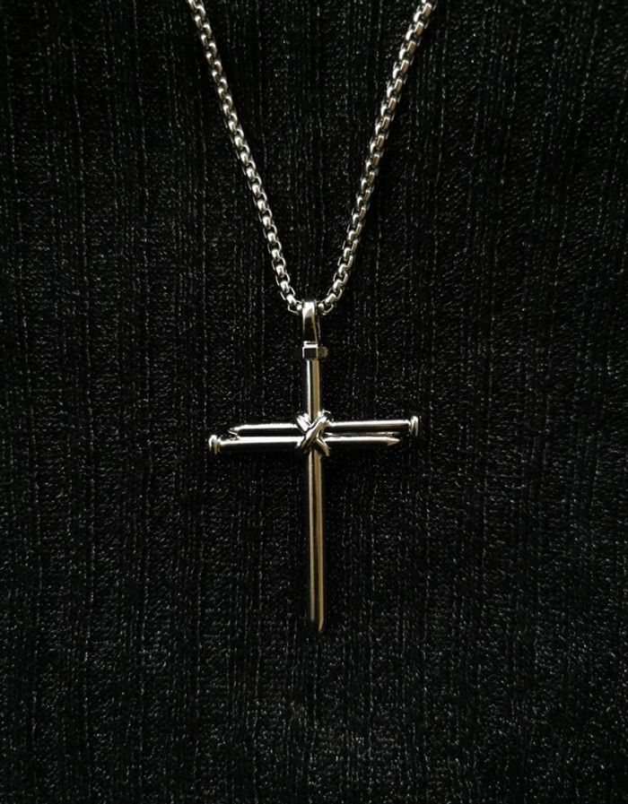 A38 Collier chaîne pendentif croix acier inoxydable chromé argenté tendance - photo numéro 1