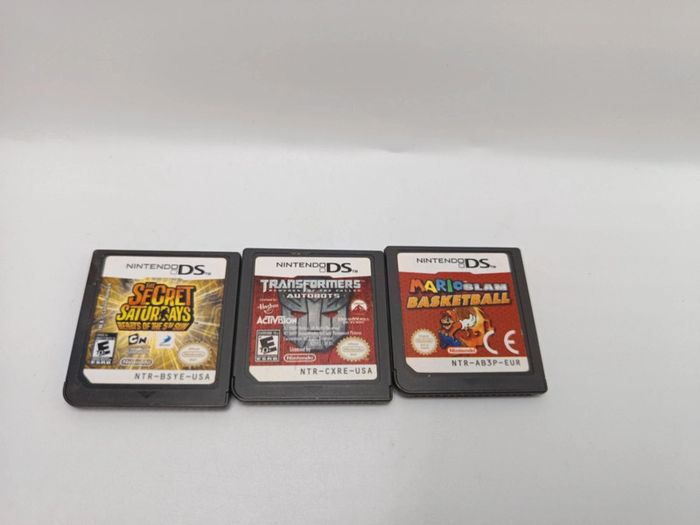 OCCASION LOT 3 JEUX NINTENDO DS 1): the secret saturdays 2): transformers autobots 3): Mario slam basketball 🏀 Jeux testé et fonctionnelle Vendu en LOOSE 👍 📦✅ Envoi sous 24h rapide et bien emballé Bon achat à vous prix ferme 👍 ✅