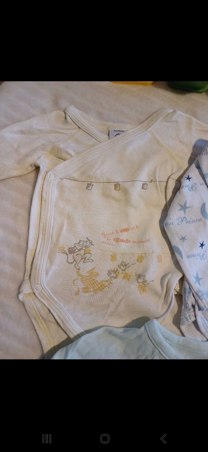 Lot de 3 bodies manches longues avec ouverture par devant. Différentes marques : petit bateau, pat et ripaton et ptit béguin.