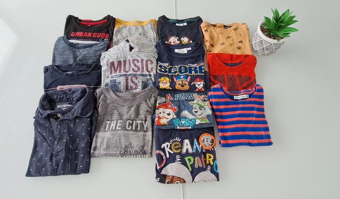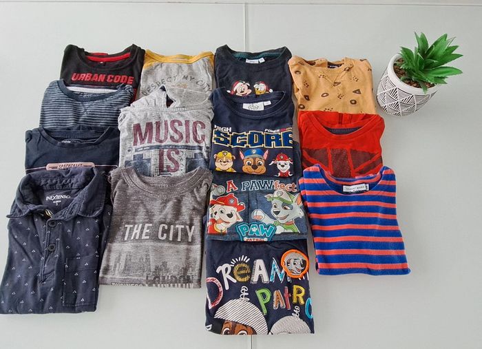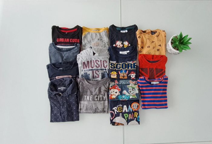 Lot de 14 tee-shirts manches longues, multicolores, taille 3 ans, marque ( Disney, Courant marin, Kiabi, Vertbaudet), en bon état.