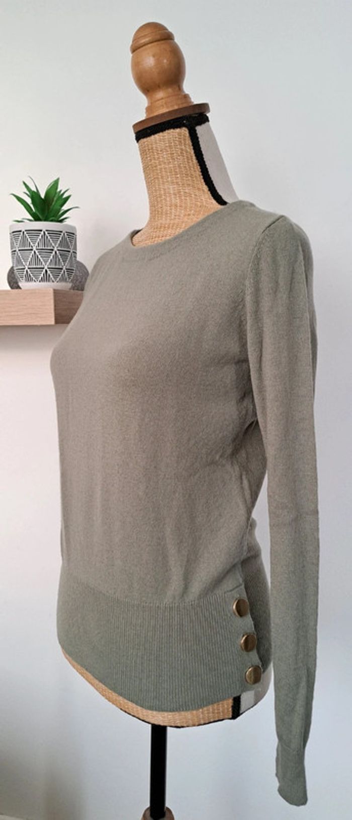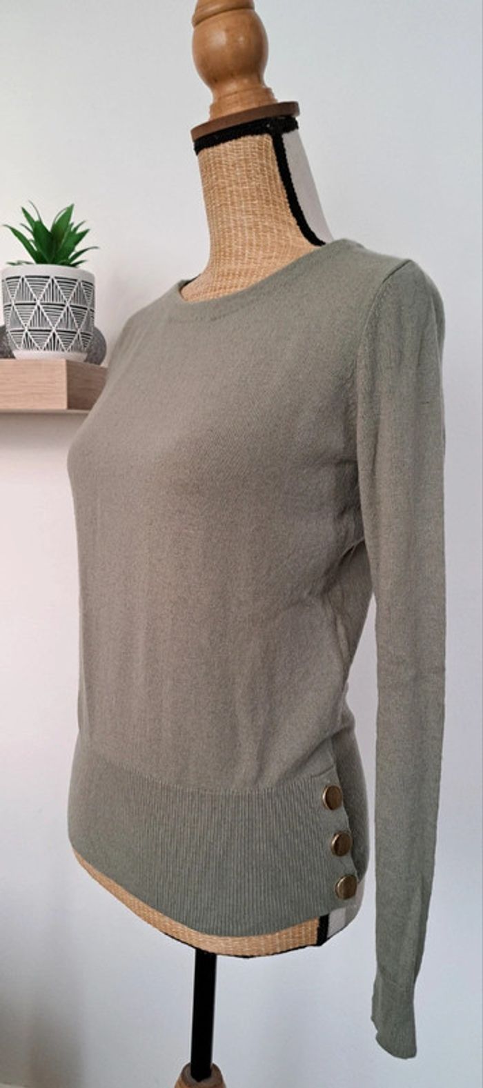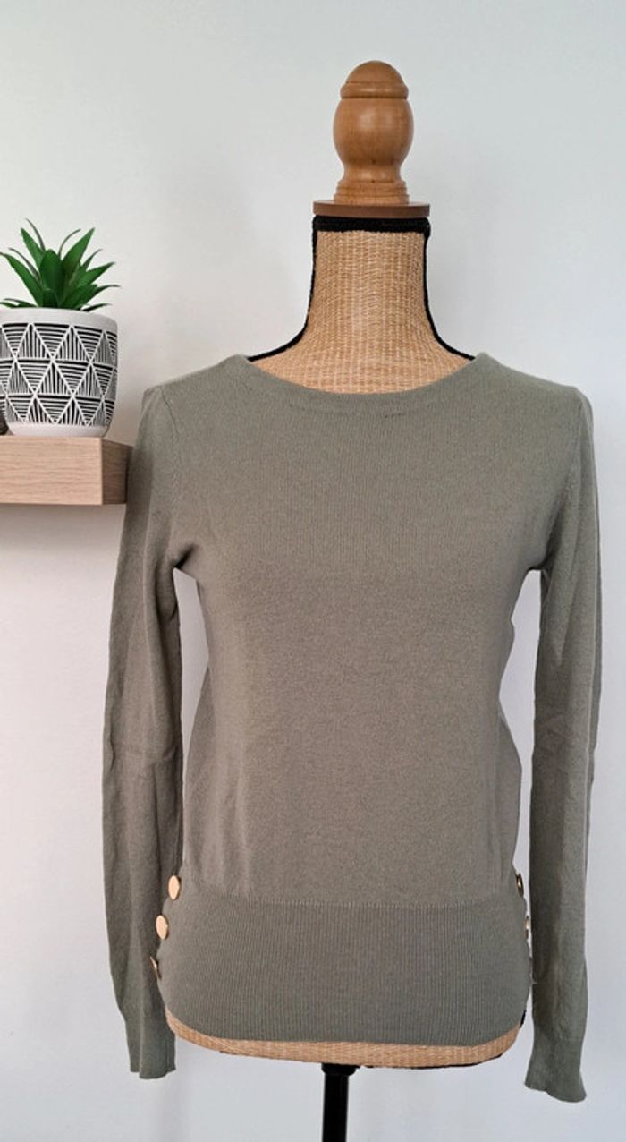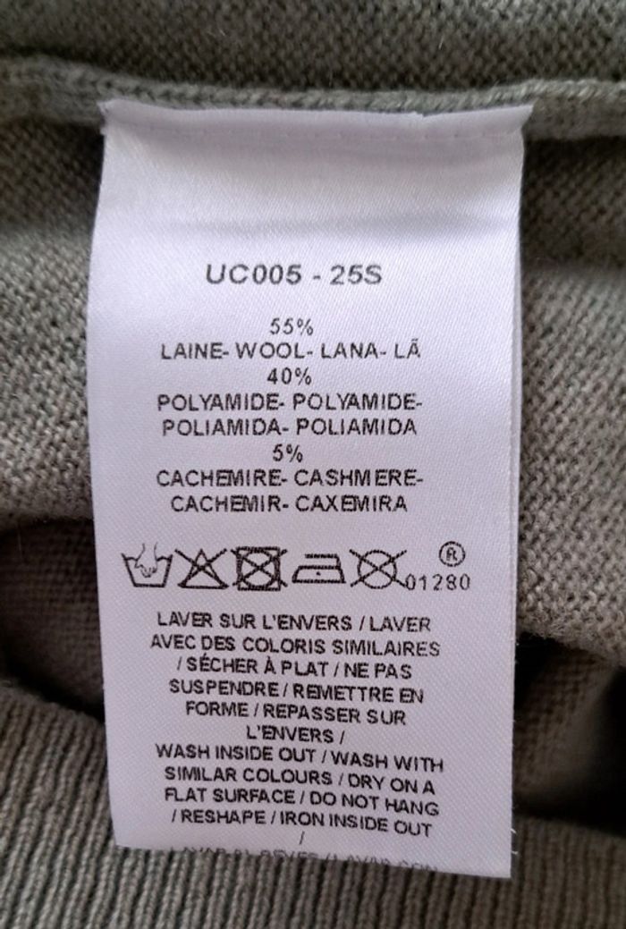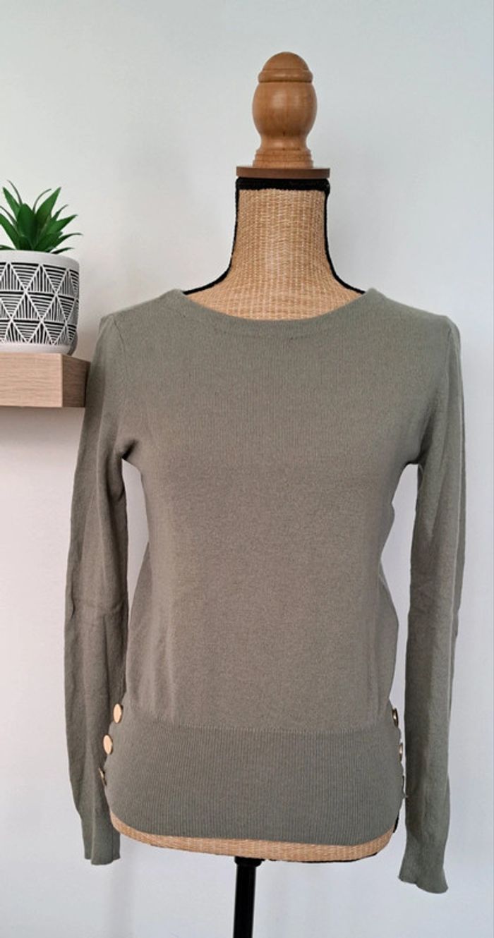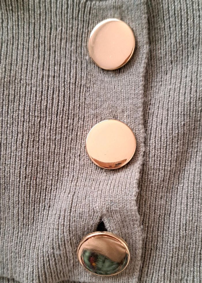 Très beau pull Caroll, col rond, manches longues, boutons dorés, manches longues, taille XS, 55% laine, 40% polyamide, 5% cachemire, en très bon état.