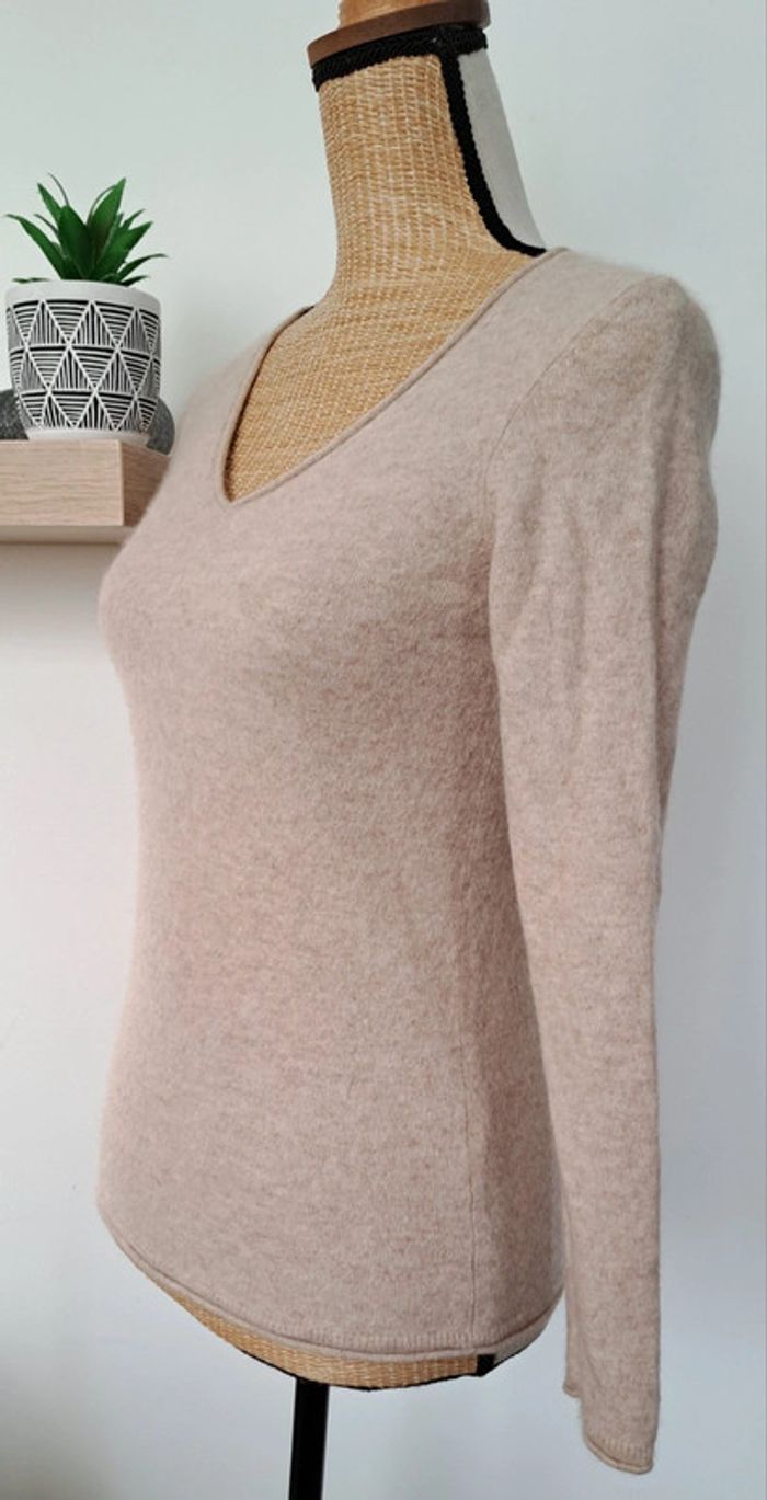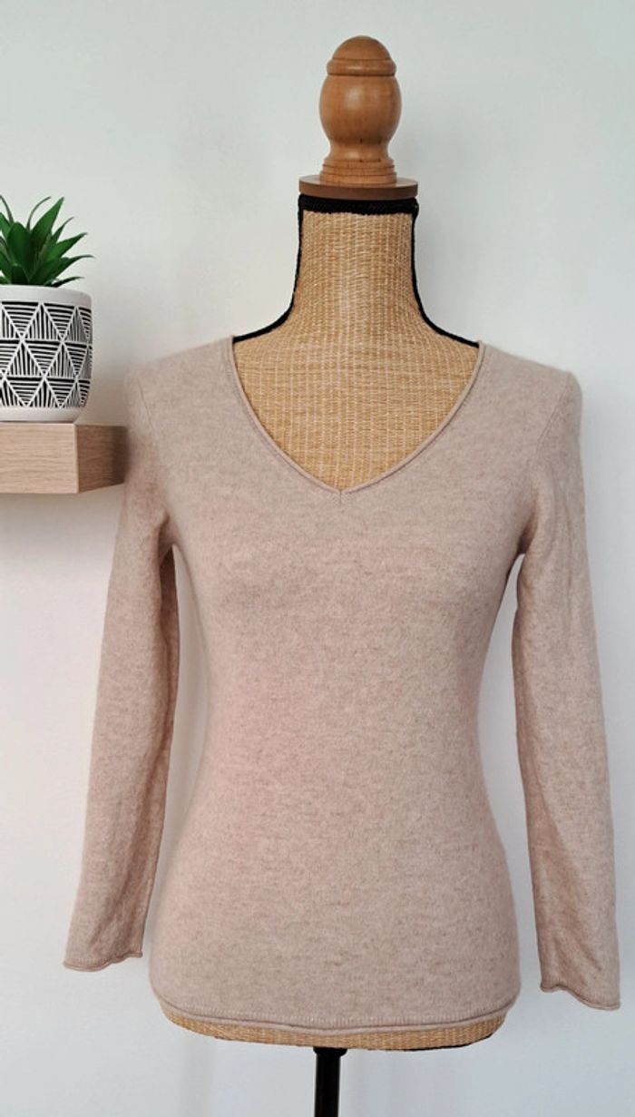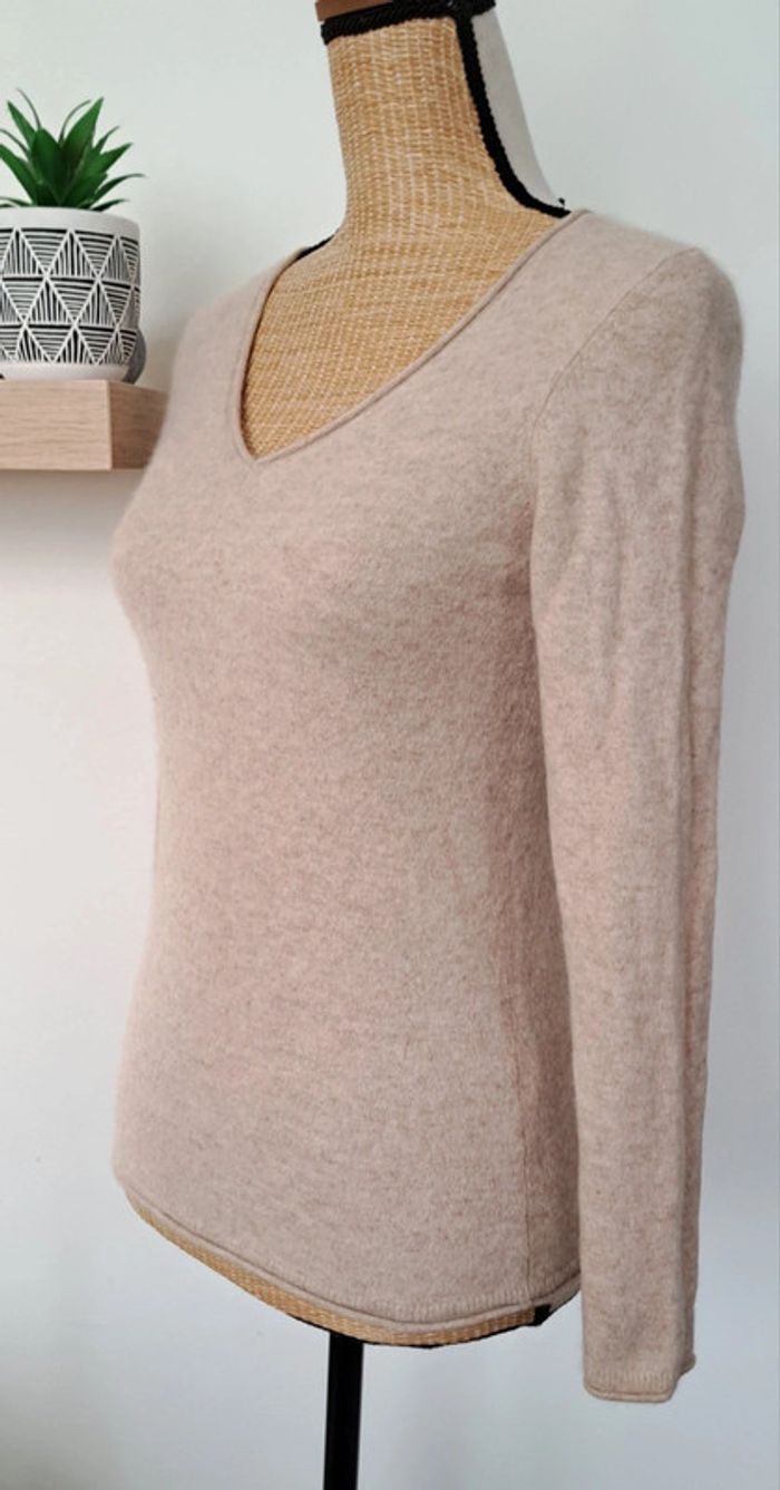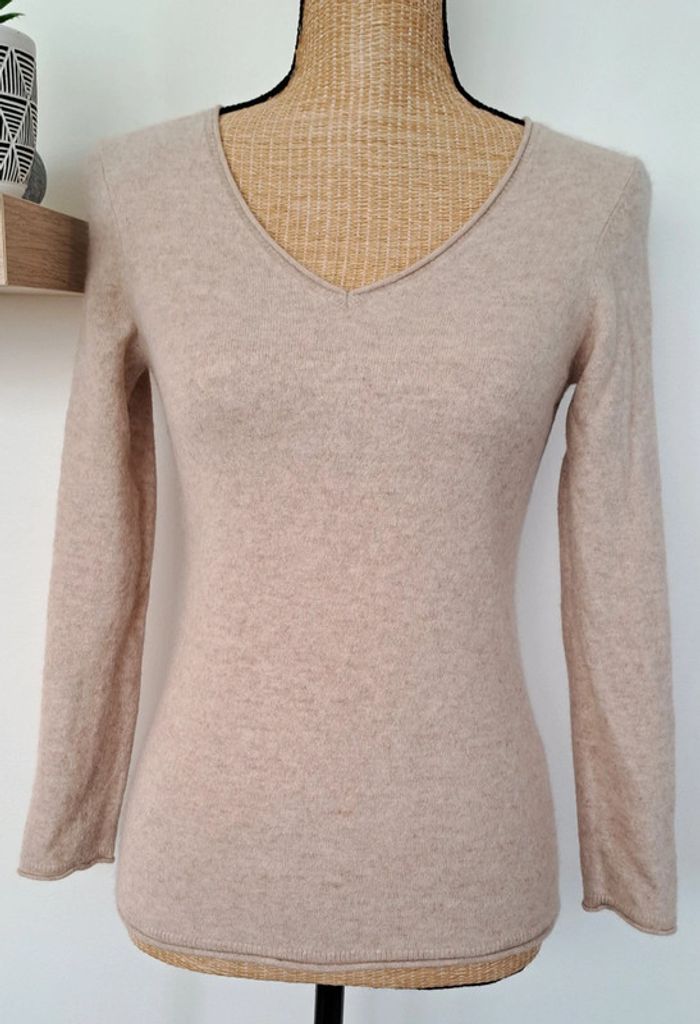 Très beau pull Caroll, beige, col V , agréable à porter, cachemire, manches longues, taille 40 mais petit convient à XS, en très bon état.