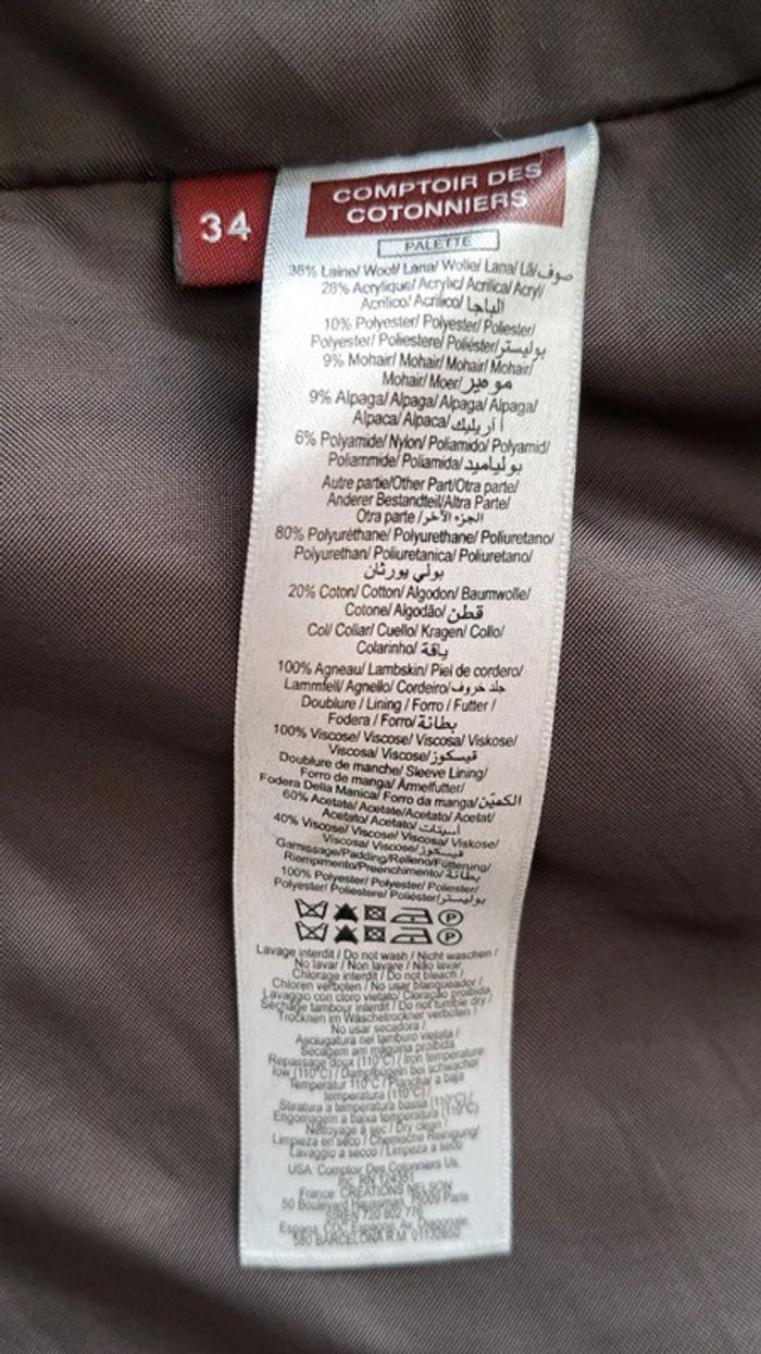 Très beau manteau en laine Comptoir Des Cotonniers, taille 34 ( parfaite pour 34-38). Composition : laine, cuir agneau .... Très confortable, doux et chaud. Très bon état.