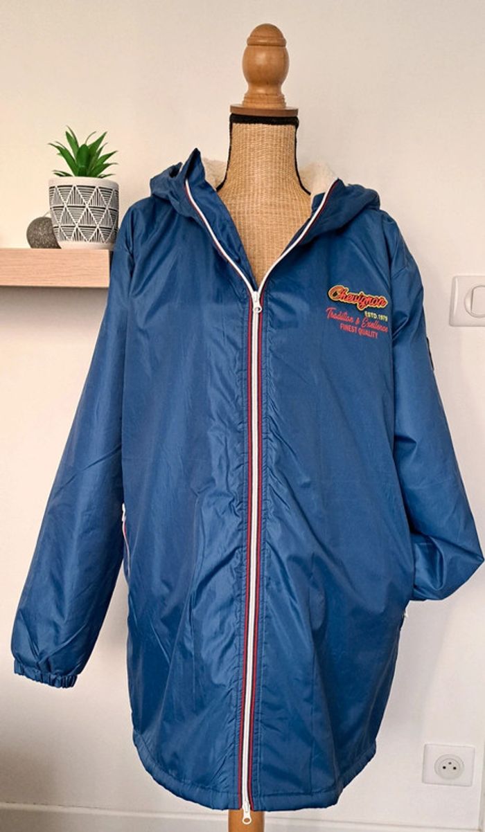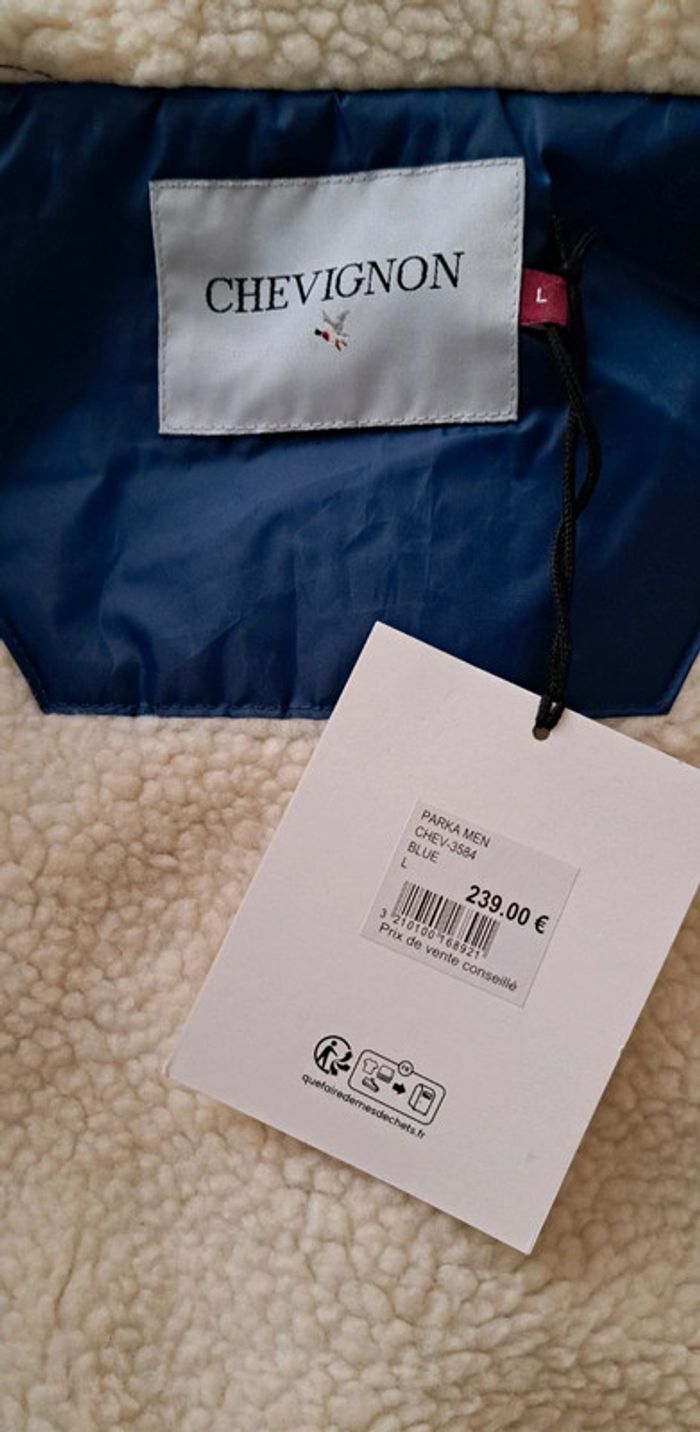 Très beau coupe vent homme Chevignon,rembourré à l'intérieur avec une moumoute, fermeture éclair, 2 poches extérieure et 2 poches intérieur, avec capuche, taille L,neuf sans étiquette (jamais porté) mais traces de plies (voir la dernière photo).
