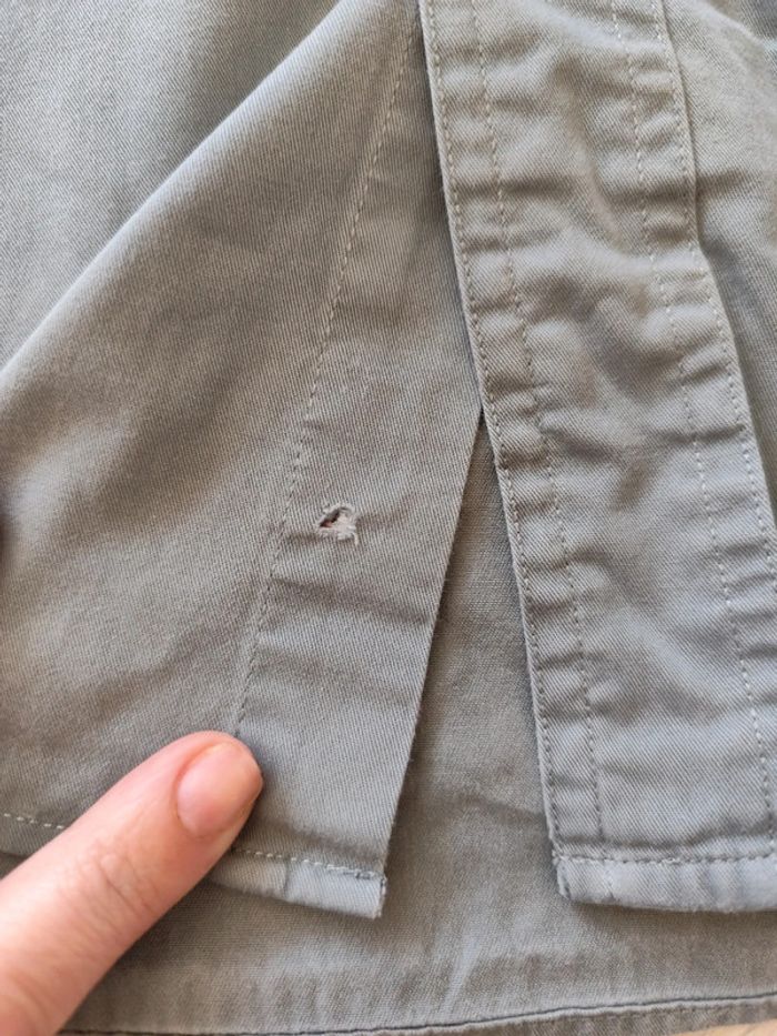 Chemise homme taille 4 équivaut à un XL petit trou qui ne se voit pas une fois chez la chemise portée voir photos