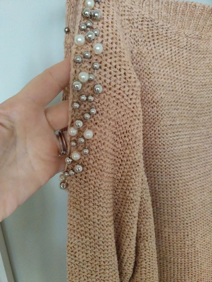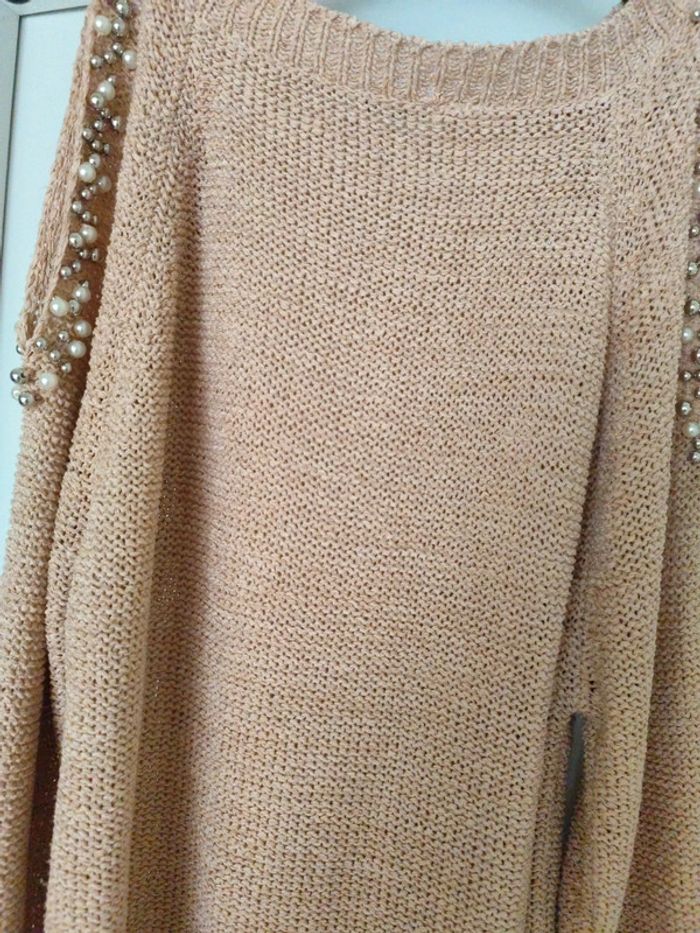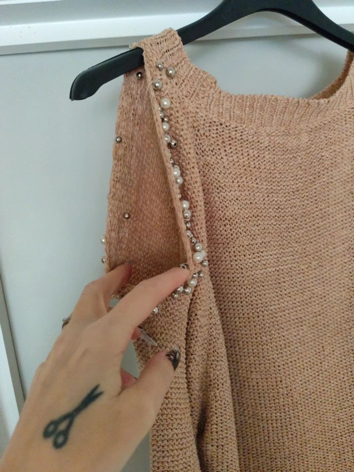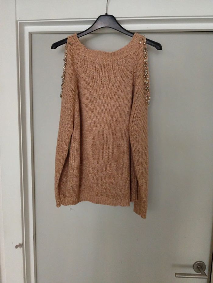 Pull femme épaule dénudée à perle de marque kilibi il n'y a plus d'étiquette de taille mais c'est un taille m
