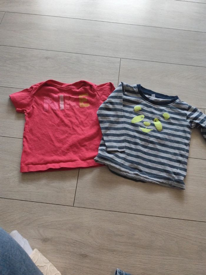 Lot de 2 t-shirt bébé garçon un à courte manche un à longue manche de marque différente un Nike un Zeeman de taille 80