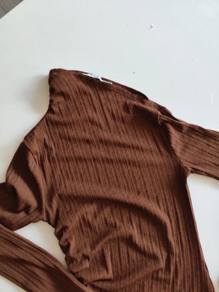 T-shirt très léger longue manche encolure de travers et fronces sur le côté