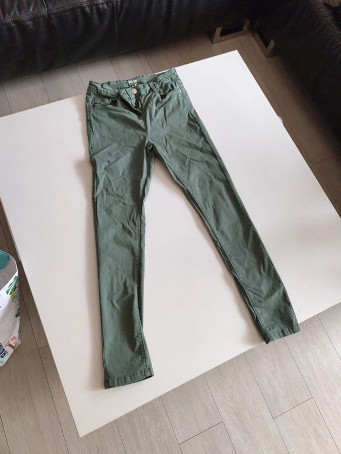 Jean skinny kaki réglable à la taille