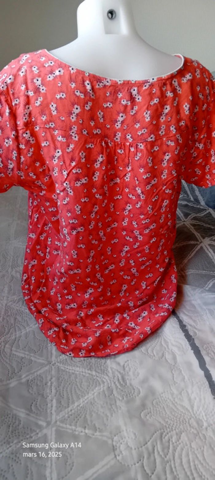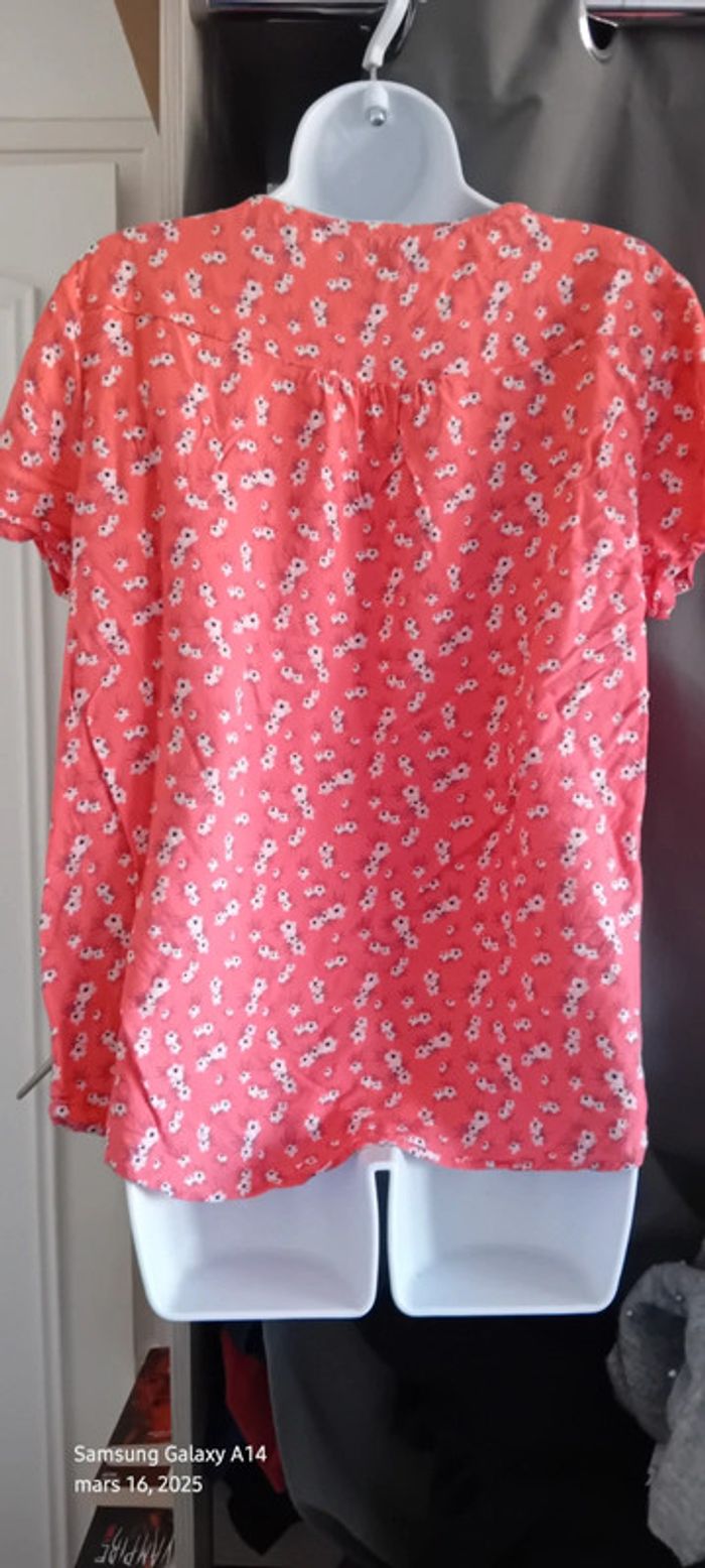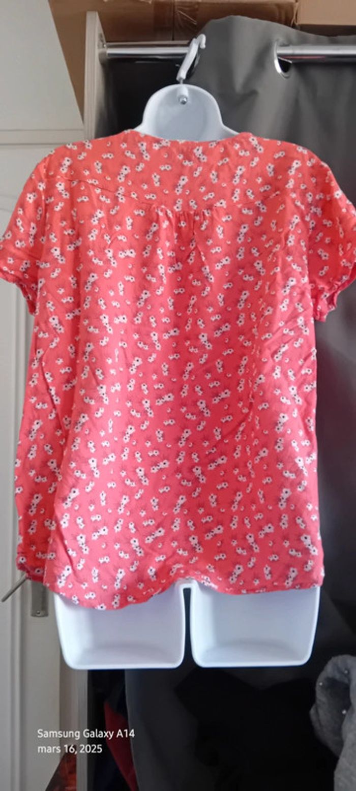 Haut col V motif floral corail femme 44 in extenso - photo numéro 15