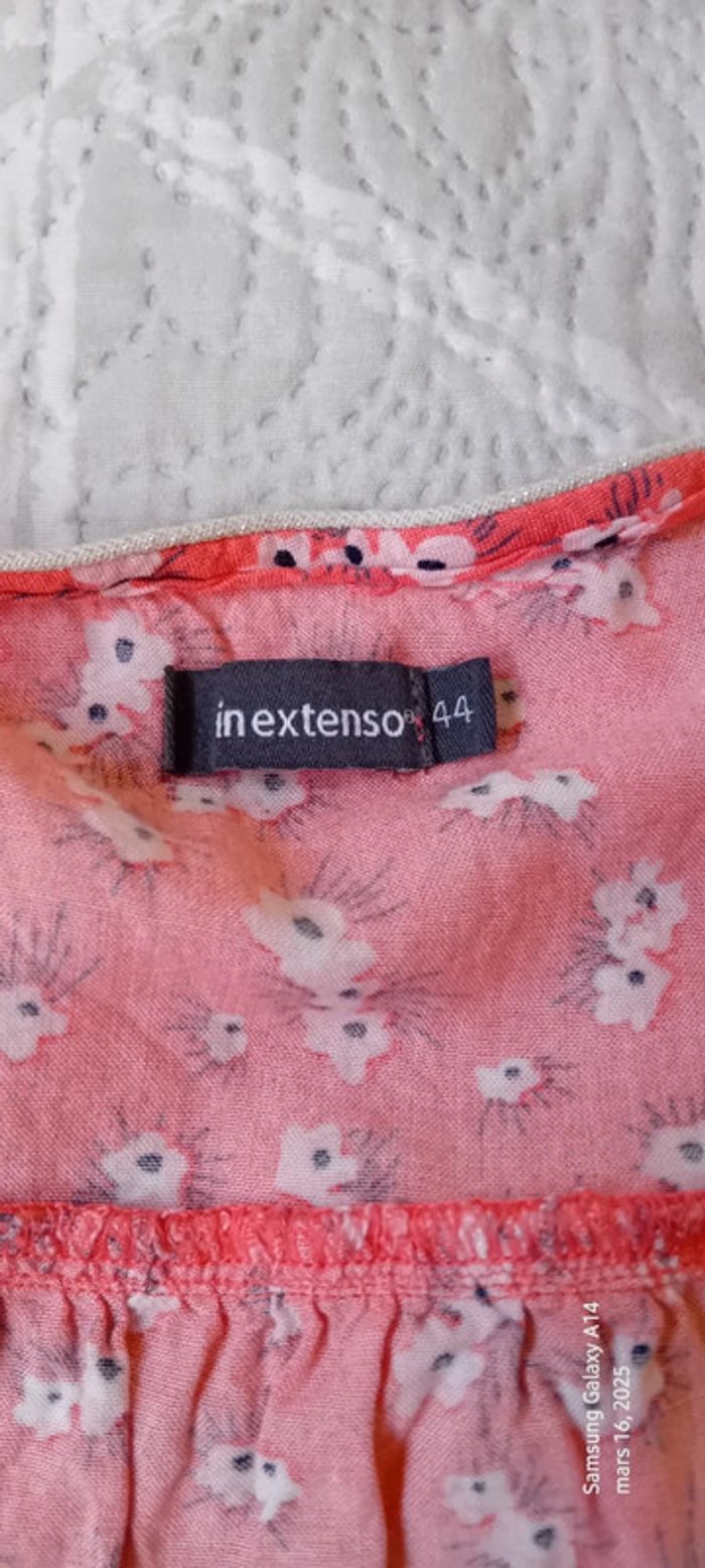 Haut col V motif floral corail femme 44 in extenso - photo numéro 9