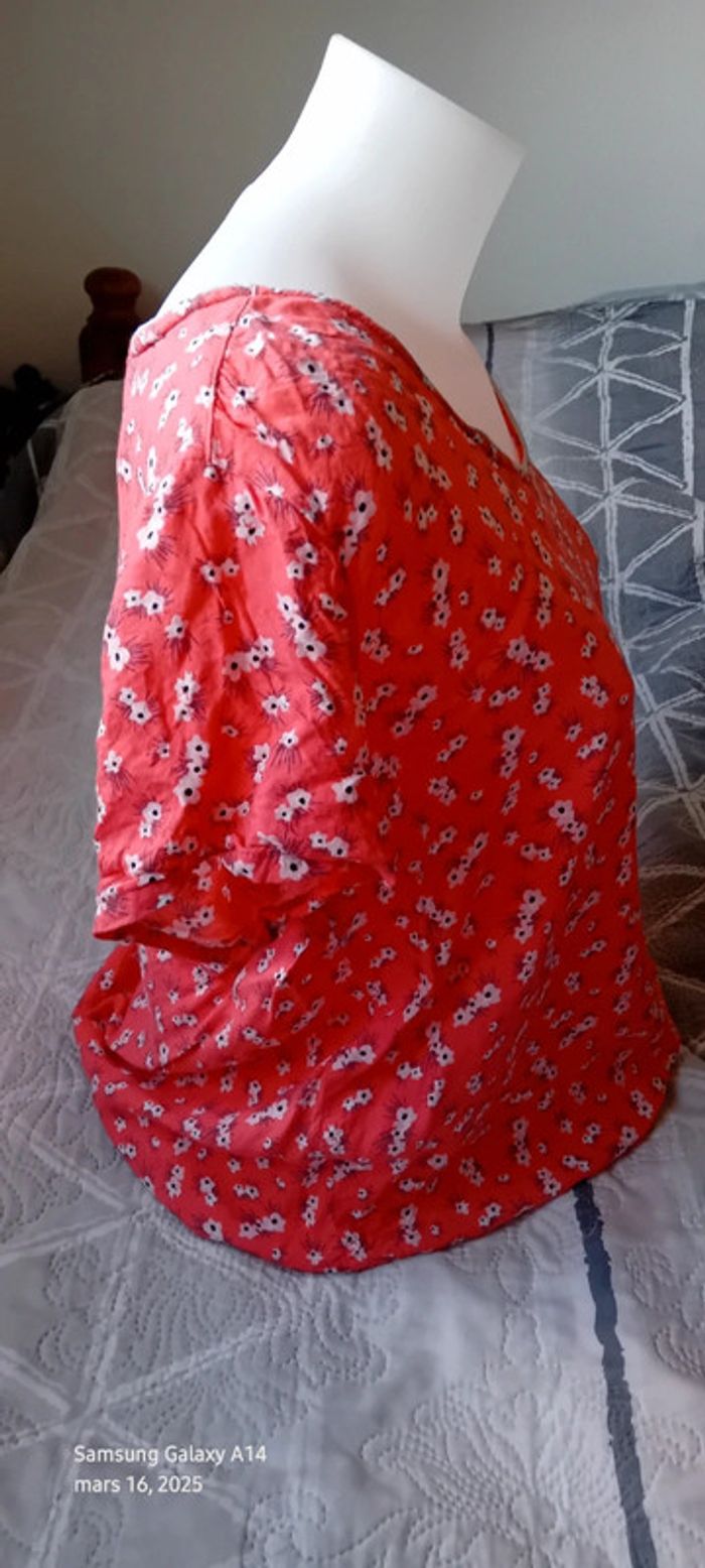 Haut col V motif floral corail femme 44 in extenso - photo numéro 10