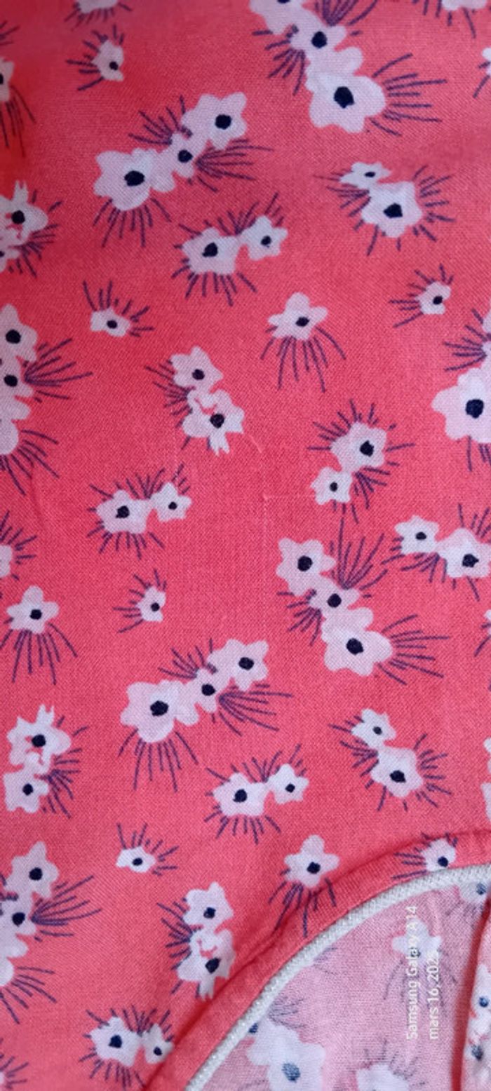 Haut manches courtes en coton léger col en V motif petites fleurs blanches sur fond rose corail longueur 63 cm largeur aisselles à aisselles 53 cm largeur épaules 40 cm porté quelques fois en bon état ⚠️ juste quelques petites griffures sur le devant (voir dernières photos) #midole #midolefemme #midolefemme44 ##femme44 #femmexxl #hautfemme44 #hautmotiffloral44 #imprimefleurs44 #corail #inextenso