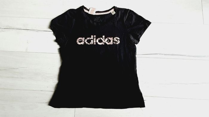 Vêtement fille tee-shirt manches courtes noir motif lettres Adidas roses 12 ans - photo numéro 1