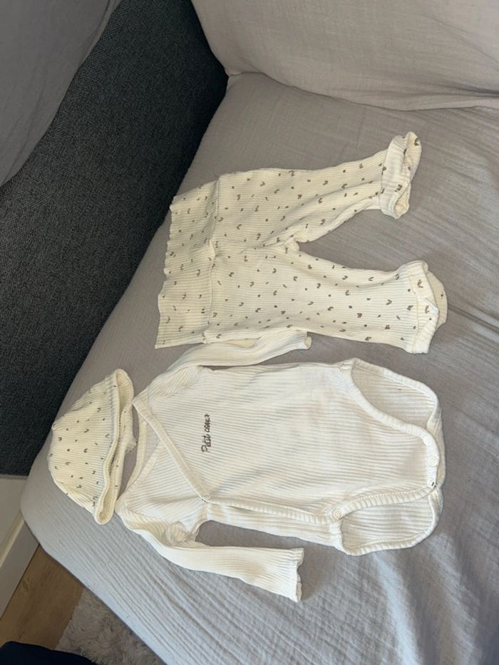Ensemble body bonnet et pantalon 1 mois Mixte Jamais porter