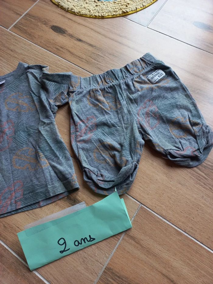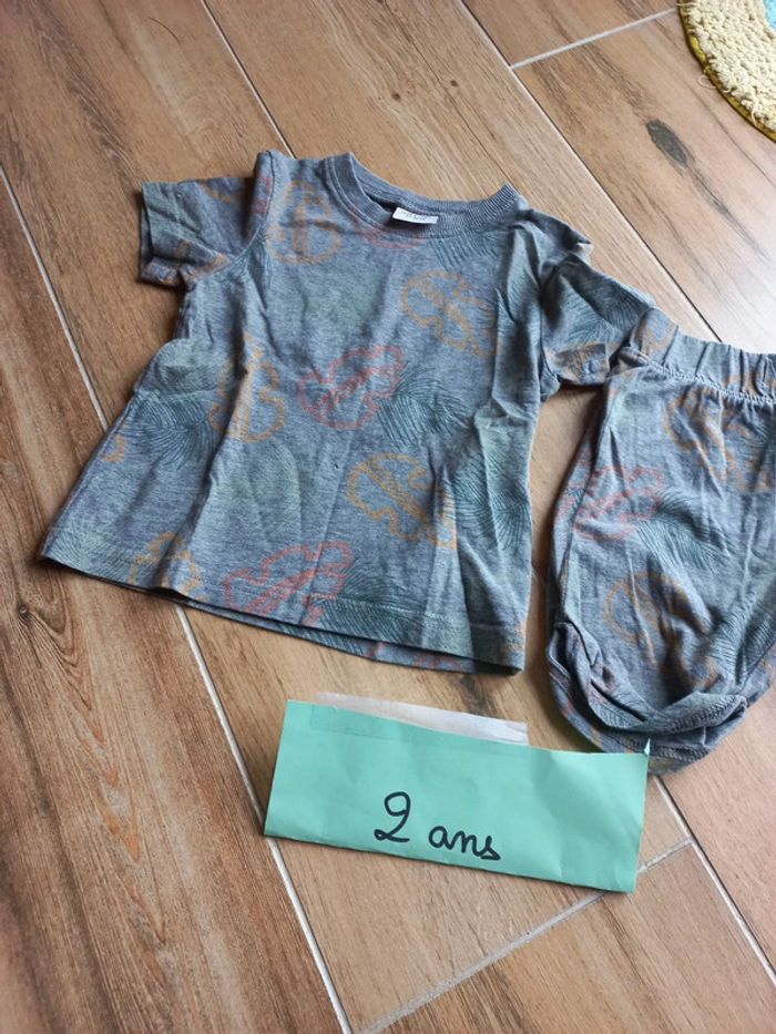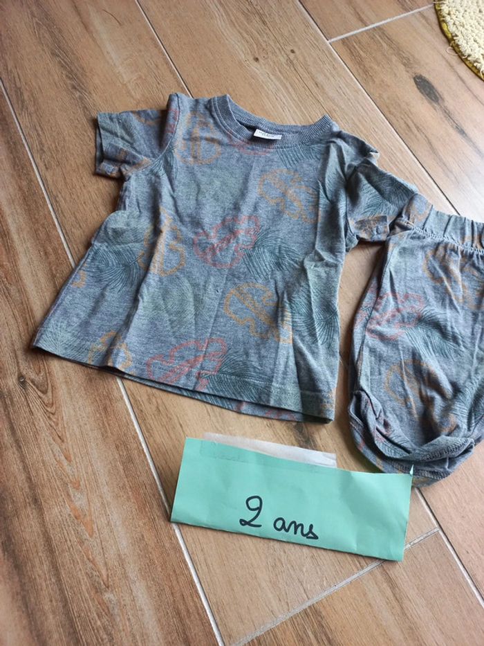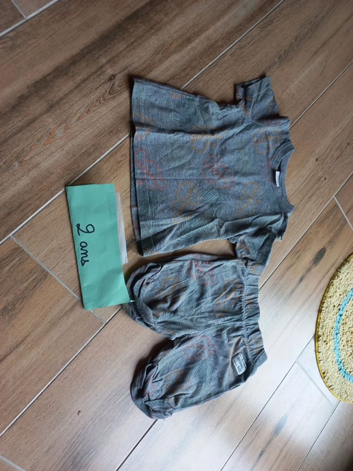 TAO taille 2ans TRES BON ETAT SAUF manque le cordon du short pour serrage à savoir que la taille est tout de même élastiquee donc ne gêne en rien 2€ le pyjama Motif tropical