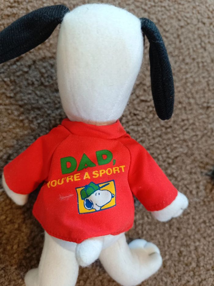 Ancienne Peluche chien Snoopy veste rouge Dad Année 1958 -1968 The greatest dad le meilleur papa numéro 1 collection jouet figurine articulée peluche poupee ancienne maison non fumeur et sans animaux n'hésitez pas à faire des lots